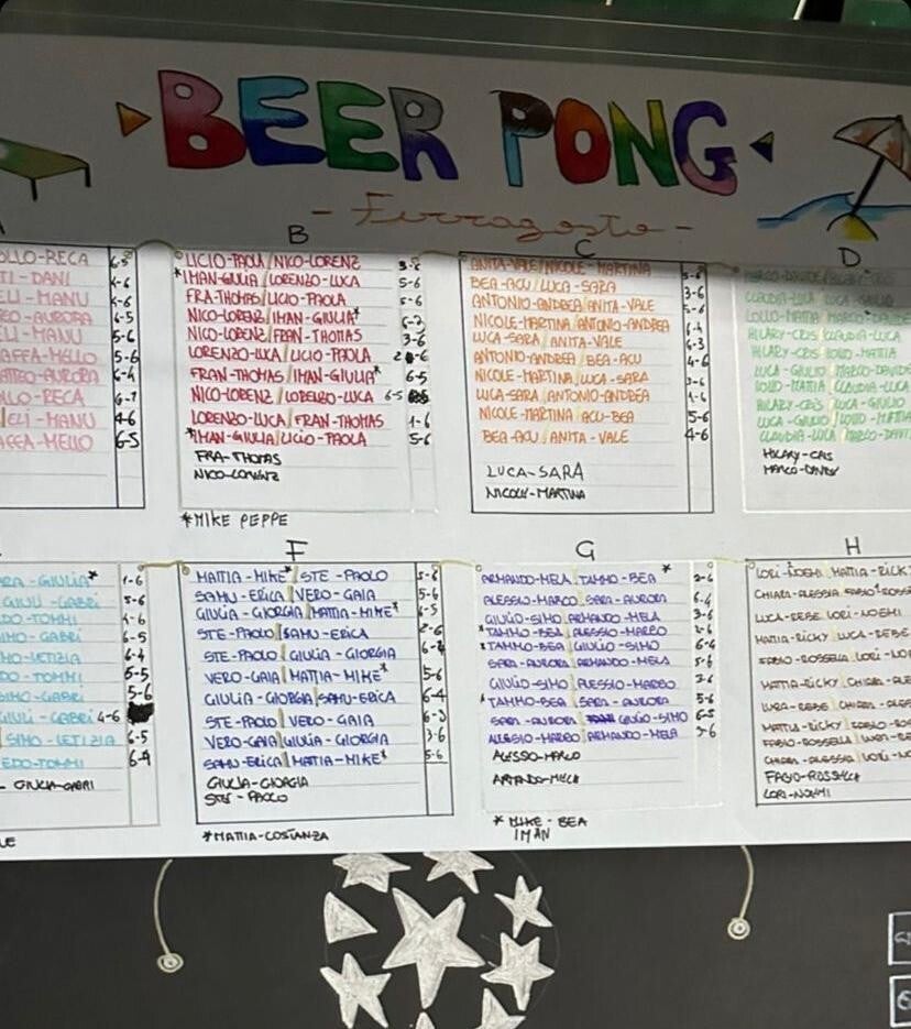 Il Beer Pong è un gioco in cui i giocatori formati a coppie, lanciano una pallina da ping pong attraverso uno dei tavoloni, con l'obiettivo di farla atterrare con un solo rimbalzo nei bicchieri dell'avversario. Se la pallina entra nel bicchiere, l'avversario deve bere un bicchiere di birra. L'obiettivo è eliminare tutti i bicchieri dell'avversario prima che lui elimini i tuoi. È un gioco di abilità, ma a volte anche fortuna (o sfortuna).